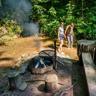 Im schattigen Blauhölzliwald in Häggenschwil lässt es sich bei heissen Temperaturen besonders gut Verweilen, denn ein Bach lädt zur Erfrischung ein. Gleich nebenan befindet sich die Feuerstelle mit Tisch und Bank sowie ein Spielplatz zum Austoben. Für Familien mit Kindern ist dieser Zwischenstopp auf einer Velotour ein Muss.