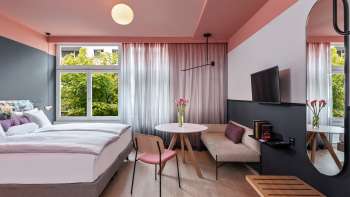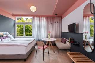 Mit einer grosszügigen, wohnlich eingerichteten Lobby, 32 stilvollen und individuellen Zimmern und einem kreativen Workshopraum lädt das Hotel nicht nur zum Übernachten, sondern auch Verweilen und Tagen ein. Stoffe von Jakob Schlaepfer und Christian Fischbacher sind im ganzen Haus zu finden und verleihen den modernen Elementen eine gemütliche Note.