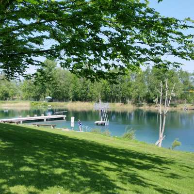 Auf dem Campingplatz stehen den Gästen ca. 30 Tagesstellplätze für Wohnmobile und Zelte zu Verfügung. Der Sanitärbereich bietet Toilettenanlagen, Spülbereich und Waschmaschine/Trockner. Die Campeure haben freien Zutritt zum Strandbad.