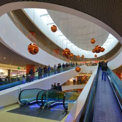 Der ellipsenförmige Lichthof sowie die ellipsenförmige Kuppel sorgen für eine optimale Ausleuchtung mit Tageslicht. Die ausgefallenen Sitzbänke, welche speziell für den Rheinpark entwickelt wurden, laden zum gemütlichen Verweilen ein.