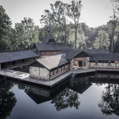 - ursprüngliche Badeinfrastruktur von 1896 mit integrierten Holzliegeflächen