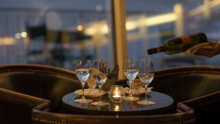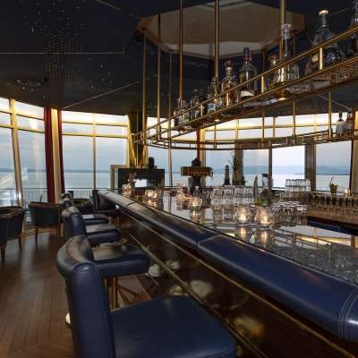 In der «Faro Bar» haben die Gäste immer freie Sicht auf die Sterne. 1500 Lichter erhellen die Decke in acht Sternbildern. Das Besondere ist der Leuchtturm, welcher der M.Y. «Emily» den Heimweg weist.