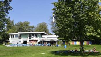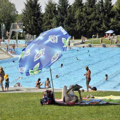 Zum Freibad gehört ein Selbstservicerestaurant mit grosser Sonnenterrasse und Sonnensegel.