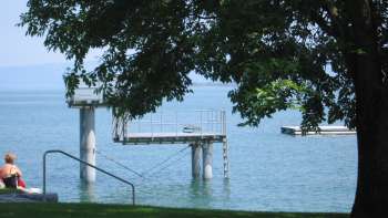 Die familiäre Badi hat direkten Seeanschluss zum schönen Bodensee. Zu den Flossen schwimmen oder lieber einen Sprung ins erfrischende Nass wagen? Je nach Wasserstand ist der Sprungturm ca. 3.5m und 1.5m hoch.