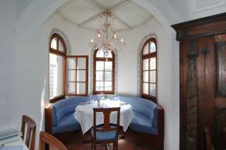 Die Gastgeber haben sich mit Leib und Seele der Herausforderung verschrieben, Produkte und Spezialitäten aus der Region salonfähig zu machen. Bei ausgewählten Landwirten, Weinkelterern, Käsern und Metzgern werden Zutaten für echte Gourmets gefunden. Daraus werden Gerichte mit klassischem oder traditionellem Hintergrund gestaltet. Handwerklich und von den Mitarbeitern liebevoll hergestellt. Der Aufenthalt im Schössli wird zum Genuss für alle Sinne. Das ist gelebte St.Galler Gastlichkeit. Geschichte: Das zwischen 1586 und 1590 von Laurenz Zollikofer, einem Enkel Vadians, erstellte Schlössli ist das herrschaftlichste Privathaus innerhalb der St.Galler Altstadt. Die Zollikofer besassen bereits mehrere Schlösser ausserhalb der Stadt und wollten nun auch innerhalb der Stadtmauern einen beeindruckenden Wohnsitz errichten. Das Schlössli diente der gesellschaftlichen Repräsentation, wichtig waren daher Festsäle, in denen Gäste bewirtet werden konnten. Daneben war das Schlössli aber auch Handelshaus: Im Erdgeschoss war ein Warenlager eingerichtet. Nach Laurenz Zollikofers Tod blieb das Schlössli noch eine weitere Generation in Familienbesitz, später kam es an andere vermögende St.Galler Familien, darunter Hochreutener, Kunkler und Schlumpf. Im 19. Jahrhundert hätte die Stadt die Chance gehabt, das Schlössli zu erwerben. Johannes Kaspar Straub bot es dem Schulrat nämlich für 17000 Gulden zum Kauf an. Das Geschäft kam jedoch nicht zustande, weil die nötigen Mittel nicht - wie die Stadt dies erhofft hatte - aus freiwilligen Beiträgen von vermögenden und wohltätigen Stadtbürgern aufgebracht wurden. So blieb das Schlössli in privatem Besitz.