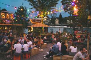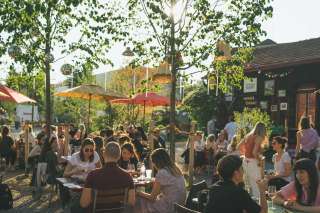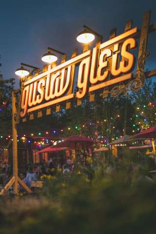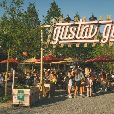 Beim Gustav Gleis trifft man sich zum Feierabendbier und zu feinen Speisen, umgeben von Bäumen und Sträuchern auf dem einzigartigem Kreativplatz.