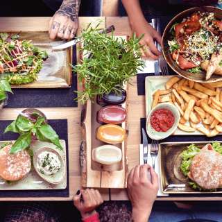 Trendiges Burgerrestaurant für Veganer, Vegetarier und Fleischliebhaber.