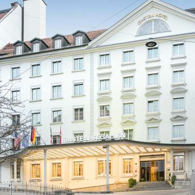 Geschichte: Der Erfolg der St.Galler Stickereiindustrie basierte auch auf ihrem technologischen Vorsprung. Die Industrialisierung der Produktion wurde überhaupt erst möglich durch die kontinuierliche Entwicklung der Technik: Der Plattstichwebstuhl, die Handstickmaschine und zuletzt die Schifflistickmaschine sicherten St.Gallen und der Ostschweiz immer wieder neu eine führende Stellung – auch im Bereich des Textilmaschinenbaus. Einer, der von diesen Standortvorteilen profitieren wollte, war der New Yorker Stickereifabrikant Isaak D. Einstein. Er eröffnete 1884 in St.Gallen eine Zweigniederlassung in einem bestehenden Fabrikgebäude an der Berneggstrasse 2, das er vom Architekten Karl August Hiller zum Stickereigeschäftshaus umbauen liess. Das Unternehmen, zunächst als «D. Einstein & Co.» und ab 1936 «Adolph Hahn & Co.» bekannt, war eines der bedeutendsten in der St.Galler Stickereiindustrie. Jahre mit viel Erfolg (frühe 1890er, 1902-08) wechselten mit wirtschaftlich oder durch Modekonjunkturen bedingten Flauten. Schwierig waren vor allem die 1930er-Jahre, die Zeit der Weltwirtschaftskrise. Architektur: Der Vorgängerbau war 1830 von Sabina Dorothea Allgäuer, der initiativen Witwe des Textilausrüsters Jacob Allgäuer, als Appreturanstalt erbaut worden. Er diente später als Spinnerei und beherbergte in den 1880er-Jahren im Erdgeschoss die städtische Volksküche, ab 1884 befand sich die Zweigniederlassung von Isaak D. Einstein im Gebäude. Bereits 1886 wurde an der Berneggstrasse 4 ein dreigeschossiger Anbau hinzugefügt. Dieser wurde im Zuge einer grösseren Erweiterung 1907 in den heute noch bestehenden Gebäudekomplex Berneggstrasse 4-6 integriert. Architekt war Jakob Merz. Heutige Nutzung: 1978 erwarb der St.Galler Textilunternehmer Max Kriemler die Gebäude und baute sie zum 4 Sterne Superior Hotel Einstein St.Gallen um. Dieses wurde 1983 eröffnet und 2009 mit dem Einstein Congress an der Wassergasse erweitert. Als Hommage an die Textilindustrie bietet das Einstein St.Gallen eine Textilland-Junior-Suite an, die mit exquisiten Ostschweizer Textilien ausgestattet ist.