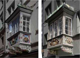 Ein Erker kommuniziert mit der Gasse. Er erweitert den Blickwinkel der Bewohner, und umgekehrt macht er diese sichtbar. Erker waren Prestigeobjekte, mit denen die wohlhabenden Familien ihre Zugehörigkeit zur wirtschaftlichen Oberschicht zum Ausdruck brachten und unverhohlen miteinander wetteiferten.