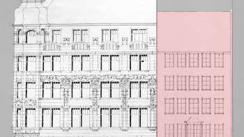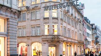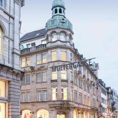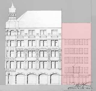 Mit seinen fünf hohen Geschossen – das oberste hinter einer Steinbalustrade versteckt – eröffnet Wendelin Heene eine neue architektonische Perspektive für die Multergasse, die nach 1900 einen Aufschwung als Ladengasse erlebt.