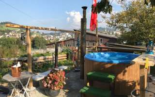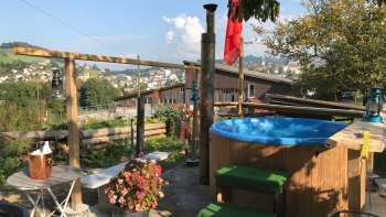 Auf der Alp oberhalb Herisau bietet die Familie Dietrich auf ihrem Hof eine einmalige Übernachtungsmöglichkeit an. Die Alpen Britsche steht direkt auf der grossen Wiese neben dem Bauernhof und bietet ein Doppelbett inklusive Sternenblick. Wie auf einem Campingplatz wird die Umgebung wahrgenommen. Eine Glasschiebetür ermöglicht den Blick auf die wunderschöne Landschaft. Mit einem Ofen lässt es sich aber auch gemütlich heizen.