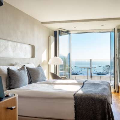 Die 58 Zimmer und Junior-Suiten, teilweise mit Balkon und Seesicht sind mit Boxspringbetten und barrierefreien Regenduschen ausgestattet.
