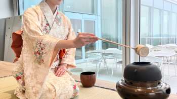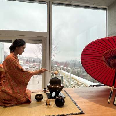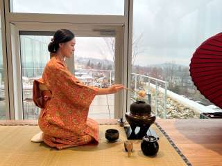Die Gäste erleben eine japanische Teezeremonie durchgeführt von der zertifizierten Teemeisterin Tomomi Sutter Kimura. Dabei erhalten sie zusätzlich Informationen zum Tee (Matcha), zur Geschichte und Philosophie. In der Stille und Harmonie der etwa einstündigen Zeremonie finden die Gäste pure Entspannung. Reservierungen sind für Gruppen von ca. 5 - 9 Personen möglich.