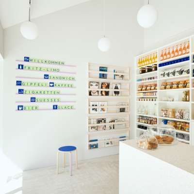 Der Kiosk hat ein klassisches Sortiment in überschaubarer Grösse, guten Kaffee sowie ein wechselndes Angebot an saisonalen Produkten aus der näheren Umgebung.