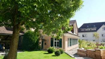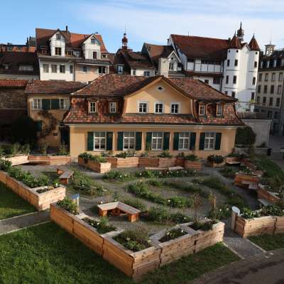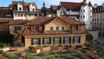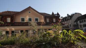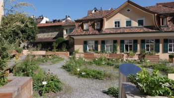Der Klostergarten zwischen dem Eingang zum Pfalzkeller und dem Regierungsgebäude lädt zum Verweilen ein.