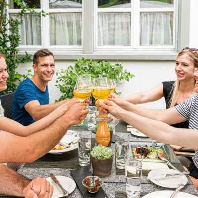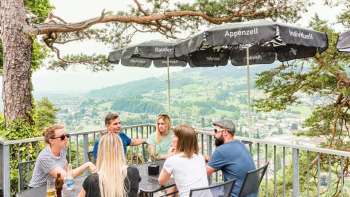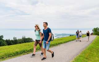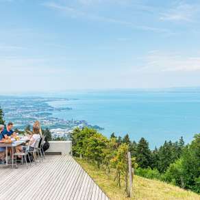 Nach der ersten Etappe über blühende Wiesen und durch schattige Wälder serviert dir das Restaurant Bären eine reichhaltige Vorspeise mit Gruber Spezialitäten. Mit neu gewonnener Energie machst du dich auf den Weg hoch zum Aussichtspunkt Fünfländerblick. Geniesse den spektakulären Blick über den Bodensee und auf fünf Länder: die Schweiz, Österreich, sowie die ehemaligen eigenständigen Staaten Baden, Württemberg und Bayern. Weiter geht die Wanderung bis zum Restaurant Treichli, welches einen echten Klassiker bereithält, garniert mit einem atemberaubenden Ausblick auf den Bodensee. Nun folgt der Abstieg zum Ausflugsziel Steiniger Tisch, wo bereits eine wohlverdiente Nachspeise bei bestem Ausblick über die Thaler Rebberge auf dich wartet. Die letzte Etappe endet beim Bahnhof Rheineck, wo dich die S-Bahn bequem zurück nach St.Gallen bringt. En Guätä!