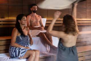 Erfahrene Bade- und Saunameister:innen leiten durch verschiedene Rituale und vermitteln in Mineralien-Zeremonien Wissenswertes zur Wirkung der enthaltenen Mineralien. Ergänzt wird das Angebot durch ein breites Spektrum an Massagen – von klassischen über thailändische, Lomi Lomi und Hot Stone bis hin zu Aroma- und Kräuterstempel-Massagen. Darüber hinaus stehen Paarmassagen sowie Premium-Massagen mit Produkten von VINOBLE Cosmetics zur Verfügung.