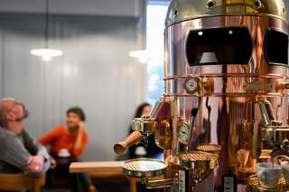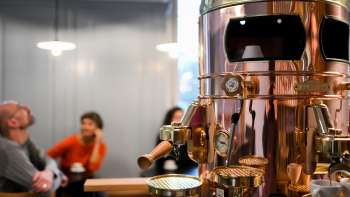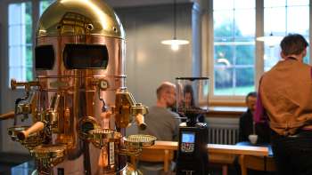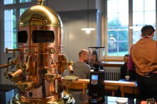Das MuCafé ist stilsicher und sorgfältig gestaltet und mit hochwertigsten Materialien gebaut. Aus der schönsten Maschine, einer «Elektra Belle Epoque», werden der beste Cappuccino und Espresso gezaubert.