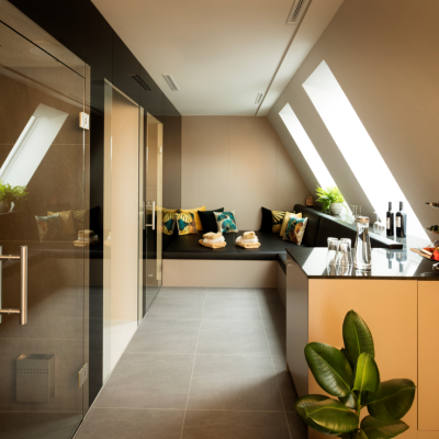 Private Spa Superior: Dampfbad / Sauna, Finarium / Erlebnisdusche / Liegestuhl mit grosser Terrasse / Lounge / Snacks / Getränke / Ausblick über die Stadt
