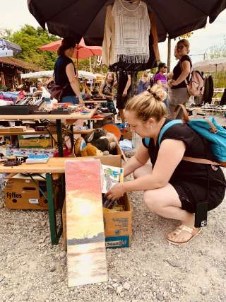 Gemütlich in alten Sachen stöbern, feilschen und die tolle Atmosphäre auf dem Areal Bach Platz geniessen.