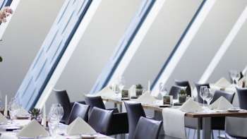 Der Ausblick auf alle Seiten wechselt immer wieder durch den Lichteinfall und zaubert eine einmalige Atmosphäre. Der ideale Raum für ein festliches Bankett.