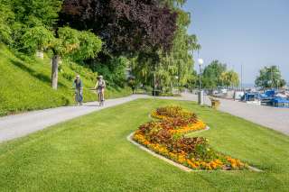 Farbige Blumenbeete, prächtig grüne Wiesen und der funkelnde Bodensee machen die Umgebung im Seepark in Romanshorn zu einem Naturschauspiel vom Allerfeinsten. Das rege Hafenleben kann hier erfahren werden.