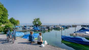 Im Seepark in Romanshorn ist einiges los: Während Touristen mit ihren Booten in den Hafen einfahren und der Hafenmeister ihnen den Weg weist, flanieren Familien über die Seepromenade. Zwischendrin geniesst man den Ausblick auf den Bodensee und die begrünten und mit Blumen betupften Wiesen.