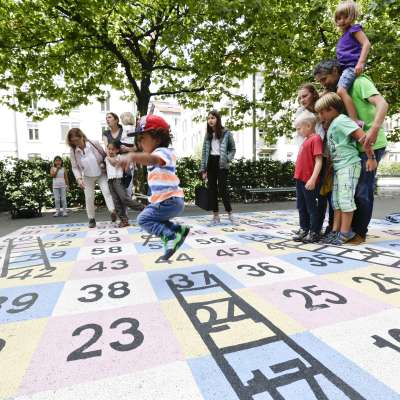Spielend die Stadt erkunden, von einem Ort zum nächsten – die Tour lädt zum Spielen und Bewegen ein.