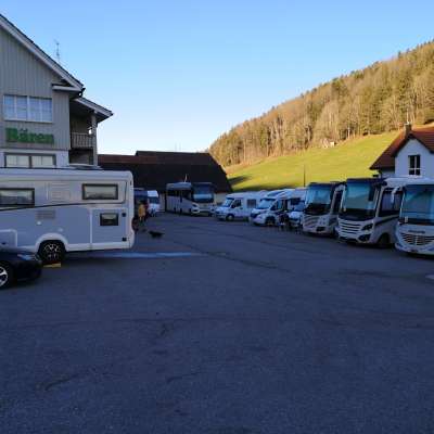 Der Landgasthof Bären Grub bietet auch Stellplätze für Wohnmobile an. Der Stellplatz bietet eine schöne Aussicht bis zu Bodensee. Strom, Wasser und WC stehen 24 Stunden zur Verfügung.