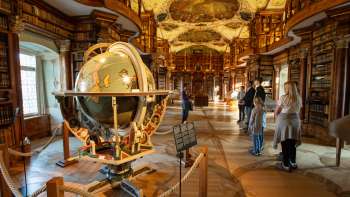 Der Barocksaal der Stiftsbibliothek überrascht durch seine reiche Rokoko-Ausstattung und gilt als einer der schönsten des Landes. Der Bestand der heute noch aktiven Bibliothek beträgt rund 170'000 Bücher. Die beeindruckende Sammlung frühmittelalterlicher Original-Handschriften macht diese Institution weltberühmt. Über 400 Bände sind mehr als 1'000 Jahre alt.