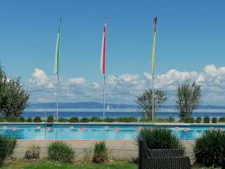 Das Strandbad mit Herberge für Junge und Junggebliebene, Familien und Radfahrer liegt direkt am internationalen Bodensee-Radwanderweg. In einer einmaligen Gegend geniessen Gäste die direkte Nähe zum Bodensee, das Wasser und den Blick hinüber ans deutsche Bodenseeufer. In einer sportlichen und unkomplizierten Atmosphäre fühlen sich Familien und Gruppen ebenso wohl wie Einzelpersonen jeden Alters. Das Strandbad hat folgende Angebote: - Schwimmen im Schwimmbecken oder im See - Wasserrutschbahn 65 m - Sprungturm - Strandspiele auf der Spielwiese - Kinderspielplatz - Gartenrestaurant