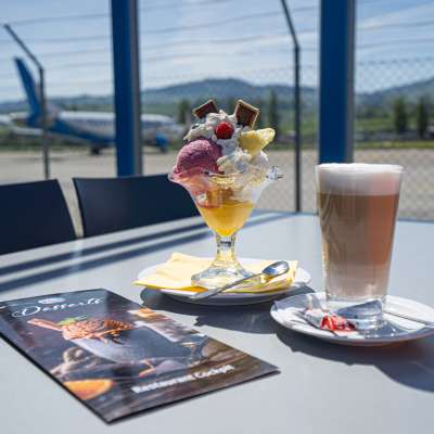 Die Gäste geniessen hier nebst den regionalen Spezialitäten einen exklusiven Blick auf das Vorfeld, wo Flugzeuge aus aller Welt starten und landen. Am Mittag wird eine abwechslungsreiche Auswahl an frischen Menüs angeboten. Auch für den kleinen Hunger zwischendurch ist gesorgt. Im Sommer lädt die Terrasse, ebenfalls mit einer grossartigen Aussicht auf das Vorfeld, zum Verweilen ein.