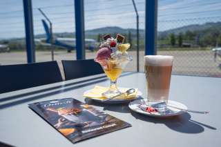 Regionale Spezialitäten und exklusiver Blick auf den Flugplatz.